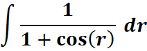 # 1st: Import the sympy module import sympy as sp # Import sympy for symbolic mathematics # 2nd: Define the variable 'r' r = sp.symbols('r') # Define the symbolic variable 'r' # 3rd: Define the integrand integrand = 1 / (1 + sp.cos(r)) # Define the function to integrate # 4th: Perform the integration with respect to 'r' integral_result = sp.integrate(integrand, r) # Compute the integral # 5th: Display the result print(integral_result) # Print the result of the integral