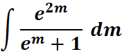 # 1st: Import the sympy module import sympy as sp # Import sympy for symbolic mathematics # 2nd: Define the variable 'm' m = sp.symbols('m') # Define the symbolic variable 'm' # 3rd: Define the integrand integrand = sp.exp(2 * m) / (sp.exp(m) + 1) # Define the function to integrate # 4th: Perform the integration with respect to 'm' integral_result = sp.integrate(integrand, m) # Compute the integral # 5th: Display the result print(integral_result) # Print the result of the integral
