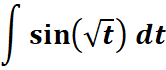 # 1st: Import the sympy module import sympy as sp # Import sympy for symbolic mathematics # 2nd: Define the variable 't' t = sp.symbols('t') # Define the symbolic variable 't' # 3rd: Define the integrand integrand = sp.sin(sp.sqrt(t)) # Define the function to integrate # 4th: Perform the integration with respect to 't' integral_result = sp.integrate(integrand, t) # Compute the integral # 5th: Display the result print(integral_result) # Print the result of the integral