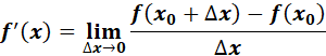 -> the limit of the ratio of the increment function to the increment of independent variable when it varies and approaches zero.