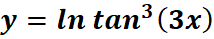 # 1st: Import the sympy module import sympy as sp # Import sympy for symbolic mathematics # 2nd: Define the variable x = sp.symbols('x') # Define 'x' as a symbolic variable # 3rd: Define the function y y = sp.ln(sp.tan(3*x)**3) # Define y = ln(tan(3x)^3) # 4th: Differentiate y with respect to x dy_dx = sp.diff(y, x) # Find the derivative of y with respect to x # 5th: Display the result print("The derivative of y with respect to x is:", dy_dx) # Output the derivative dy/dx