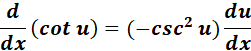 -> The derivative of the cotangent function with respect to ? is negative cosecant squared of ?.