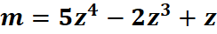 # 1st: Import the sympy module import sympy as sp # Import sympy for symbolic mathematics # 2nd: Define the symbol z = sp.symbols('z') # Define 'z' as a symbolic variable # 3rd: Define the function m(z) m = 5*z**4 - 2*z**3 + z # Define the function m(z) = 5z^4 - 2z^3 + z # 4th: Calculate the first derivative first_derivative = sp.diff(m, z) # Differentiate m(z) to find m'(z) # 5th: Calculate the second derivative second_derivative = sp.diff(first_derivative, z) # Differentiate m'(z) to find m''(z) # 6th: Calculate the third derivative third_derivative = sp.diff(second_derivative, z) # Differentiate m''(z) to find m'''(z) # 7th: Calculate the fourth derivative fourth_derivative = sp.diff(third_derivative, z) # Differentiate m'''(z) to find m''''(z) # 8th: Display the results print("Function: m(z) =", m) # Output the function m(z) print("First derivative: m'(z) =", first_derivative) # Output the first derivative m'(z) print("Second derivative: m''(z) =", second_derivative) # Output the second derivative m''(z) print("Third derivative: m'''(z) =", third_derivative) # Output the third derivative m'''(z) print("Fourth derivative: m''''(z) =", fourth_derivative) # Output the fourth derivative m''''(z)