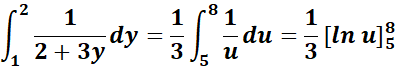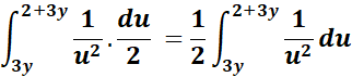 = u = 2 + 3y; du = 3 dy; dy = du/3