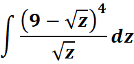 # 1st: Import the sympy module import sympy as sp # Import sympy for symbolic mathematics # 2nd: Define the variable 'z' z = sp.symbols('z') # Define 'z' as a symbolic variable # 3rd: Define the integrand integrand = ((9 - sp.sqrt(z))**4) / sp.sqrt(z) # Define the integrand function # 4th: Perform the integration integral = sp.integrate(integrand, z) # Compute the indefinite integral # 5th: Display the result sp.pprint(integral) # Pretty print the result