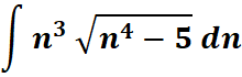 # 1st: Import the sympy module import sympy as sp # Import sympy for symbolic mathematics # 2nd: Define the variable 'n' n = sp.symbols('n') # Define 'n' as a symbolic variable # 3rd: Define the integrand f = n**3 * sp.sqrt(n**4 - 5) # Define the function to integrate # 4th: Perform the integration integral = sp.integrate(f, n) # Compute the indefinite integral # 5th: Display the result sp.pprint(integral) # Pretty print the result