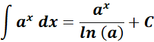 -> this states the a > 0, and a not equal to 1, the ln (a) is the natural logarithm of ?, and C is constant of integration.