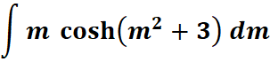 # 1st: Import the sympy module import sympy as sp # Import sympy for symbolic mathematics # 2nd: Define the variable 'm' m = sp.symbols('m') # Define the symbolic variable 'm' # 3rd: Define the integrand integrand = m * sp.cosh(m**2 + 3) # Define the function to integrate # 4th: Perform the integration with respect to 'm' integral_result = sp.integrate(integrand, m) # Compute the integral # 5th: Display the result sp.pprint(integral_result) # Pretty print the result