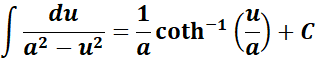 -> this states the integral of inverse hyperbolic cotangent function if u2 > a2.