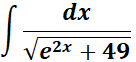 = u = ex; du = ex dx; dx = du/u; a2 = 49; a = 7
