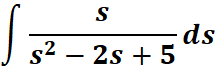 # 1st: Import the sympy module import sympy as sp # Import sympy for symbolic mathematics # 2nd: Define the variable 's' s = sp.symbols('s') # Define the symbolic variable 's' # 3rd: Define the integrand integrand = s / (s**2 - 2*s + 5) # Define the function to integrate # 4th: Perform the integration with respect to 's' integral_result = sp.integrate(integrand, s) # Compute the integral # 5th: Display the result sp.pprint(integral_result) # Pretty print the result