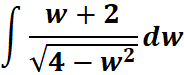 # 1st: Import the sympy module import sympy as sp # Import sympy for symbolic mathematics # 2nd: Define the variable 'w' w = sp.symbols('w') # Define the symbolic variable 'w' # 3rd: Define the integrand integrand = (w + 2) / sp.sqrt(4 - w**2) # Define the function to integrate # 4th: Perform the integration with respect to 'w' integral_result = sp.integrate(integrand, w) # Compute the integral # 5th: Display the result sp.pprint(integral_result) # Pretty print the result