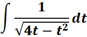# 1st: Import the sympy module import sympy as sp # Import sympy for symbolic mathematics # 2nd: Define the variable 't' t = sp.symbols('t') # Define the symbolic variable 't' # 3rd: Define the integrand integrand = 1 / sp.sqrt(4 * t - t**2) # Define the function to integrate # 4th: Perform the integration with respect to 't' integral_result = sp.integrate(integrand, t) # Compute the integral # 5th: Display the result sp.pprint(integral_result) # Pretty print the result