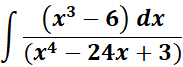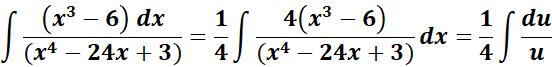 = u = x4 - 24x + 3; du = 4x3 - 24 dx; du = 4 (x3 - 6) = du