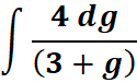 # 1st: Import the sympy module import sympy as sp # Import sympy for symbolic mathematics # 2nd: Define the variable 'g' g = sp.symbols('g') # Define the symbolic variable 'g' # 3rd: Define the integrand integrand = 4 / (3 + g) # Define the function to integrate # 4th: Perform the integration with respect to 'g' integral_result = sp.integrate(integrand, g) # Compute the integral # 5th: Display the result sp.pprint(integral_result) # Pretty print the result