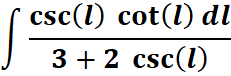 # 1st: Import the sympy module import sympy as sp # Import sympy for symbolic mathematics # 2nd: Define the variable 'l' l = sp.symbols('l') # Define the symbolic variable 'l' # 3rd: Define the integrand integrand = sp.csc(l) * sp.cot(l) / (3 + 2 * sp.csc(l)) # Define the function to integrate # 4th: Perform the integration with respect to 'l' integral_result = sp.integrate(integrand, l) # Compute the integral # 5th: Display the result sp.pprint(integral_result) # Pretty print the result