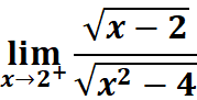 # 1st: Import necessary functions from sympy from sympy import symbols, sqrt, limit # 2nd: Define the variable and the function x = symbols('x') # Define 'x' as a symbolic variable f = sqrt(x - 2) / sqrt(x**2 - 4) # Define the function f(x) = sqrt(x - 2) / sqrt(x^2 - 4) # 3rd: Calculate the limit as x approaches 2 from the right lim_result = limit(f, x, 2, dir='+') # Compute the limit of f(x) as x -> 2 from the right # 4th: Print the result print(lim_result) # Output the result of the limit