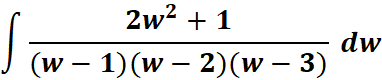 # 1st: Import the sympy module import sympy as sp # Import sympy for symbolic computation # 2nd: Define the variable 'w' w = sp.symbols('w') # Define the symbolic variable 'w' # 3rd: Define the integrand integrand = (2 * w**2 + 1) / ((w - 1) * (w - 2) * (w - 3)) # Define the function to integrate # 4th: Perform the integration with respect to 'w' integral_result = sp.integrate(integrand, w) # Compute the integral # 5th: Display the result print(integral_result) # Print the result of the integral