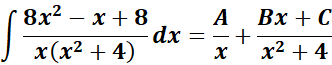 = A = x; B = (x2 + 4)