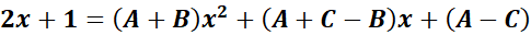 = x2: A + B = 0; x: A + C - B = 2