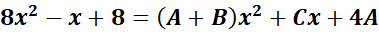 = x2: A + B = 8; x: C = -1