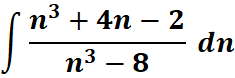 # 1st: Import the sympy module import sympy as sp # Import sympy for symbolic computation # 2nd: Define the variable n = sp.symbols('n') # Define the symbolic variable 'n' # 3rd: Define the integrand integrand = (n**3 + 4*n - 2) / (n**3 - 8) # Define the function to integrate # 4th: Integrate the expression integral_result = sp.integrate(integrand, n) # Perform the integration # 5th: Display the result print(integral_result) # Print the result of the integral
