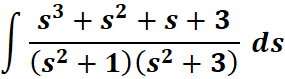 # 1st: Import the sympy module import sympy as sp # Import sympy for symbolic computation # 2nd: Define the variable and the function s = sp.symbols('s') # Define the symbolic variable 's' f = (s**3 + s**2 + s + 3) / ((s**2 + 1)*(s**2 + 3)) # Define the function to integrate # 3rd: Perform partial fraction decomposition decomp = sp.apart(f) # Compute the partial fraction decomposition # 4th: Compute the integral of the decomposed expression integral = sp.integrate(decomp, s) # Perform the integration # 5th: Output the result print("The integral is:", integral) # Print the result of the integral