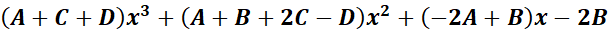 = x3: A + C + D = 0; x2: A + B + 2C - D = 0