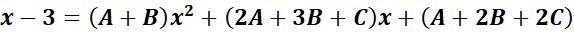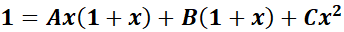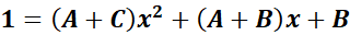 = x2: A + B = 0; x: 2A + 2B + C = 1