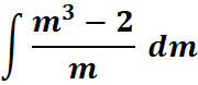 # 1st: Import the sympy module import sympy as sp # Import sympy for symbolic computation # 2nd: Define the variable 'm' m = sp.symbols('m') # Define the symbolic variable 'm' # 3rd: Define the integrand integrand = (m**3 - 2) / m # Define the function to integrate # 4th: Perform the integration with respect to 'm' integral_result = sp.integrate(integrand, m) # Compute the integral # 5th: Display the result print(integral_result) # Print the result of the integral
