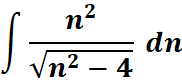 # 1st: Import the sympy module import sympy as sp # Import sympy for symbolic computation # 2nd: Define the variable 'n' n = sp.symbols('n') # Define the symbolic variable 'n' # 3rd: Define the integrand integrand = n**2 / sp.sqrt(n**2 - 4) # Define the function to integrate # 4th: Perform the integration with respect to 'n' integral_result = sp.integrate(integrand, n) # Compute the integral # 5th: Display the result print(integral_result) # Print the result of the integral